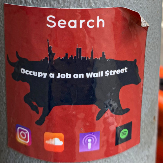 Occupy a Job on Wall Street is an online “autobiographical novel”, mainly an audio podcast that focuses on the stories that involved with Wall Street.