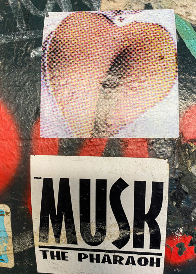 Musk is an anonymous street artist. Musk is able to do both tagging and graffiti to represent his style signature.
