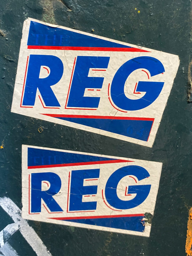 REG is an anonymous street artist. Both of his graffiti and tagging stickers are very playful and colorful.