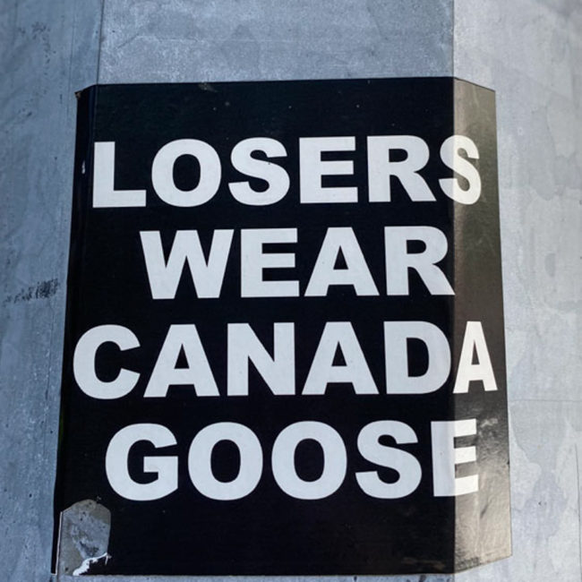 “Losers wear Canada Goose”, is probably made by animal rights activists…