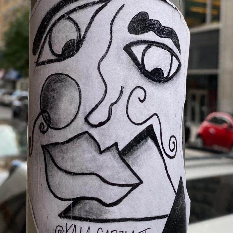 This sticker of “Two Skulls” can be found near 25 Orchard St. Two Skulls is the logo of TWO ROBBERS, a Philadelphia-based beverage company.