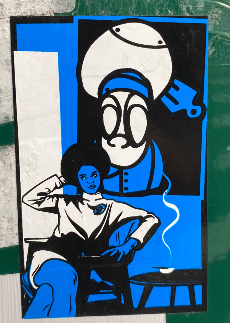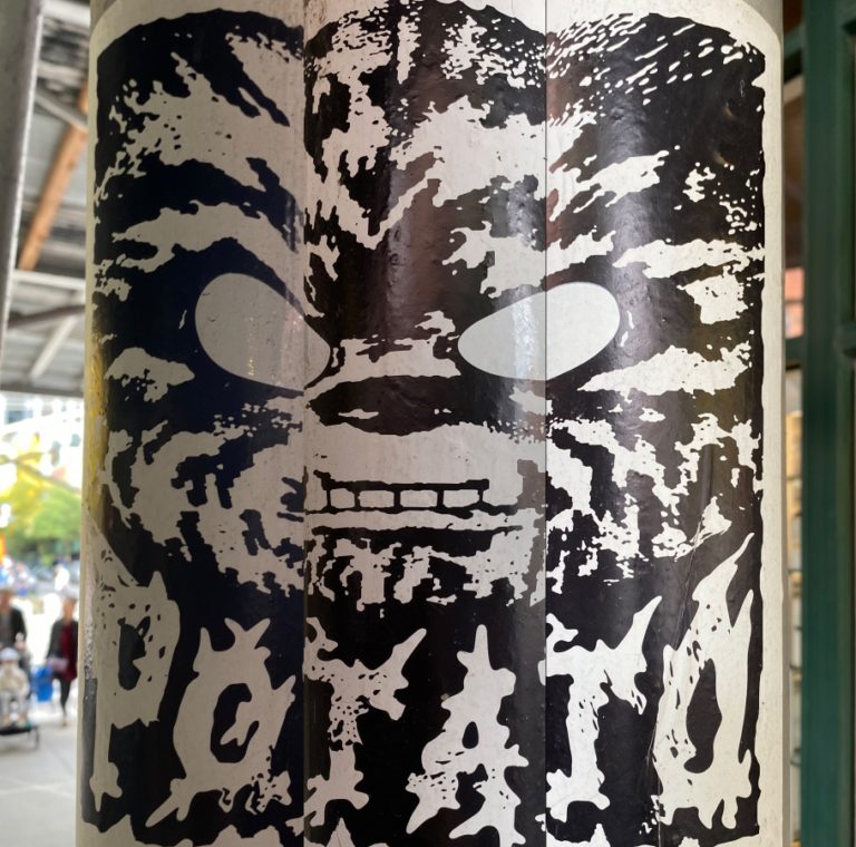 There’s not enough information about this blue and white sticker from both online and near its location where it was posted.