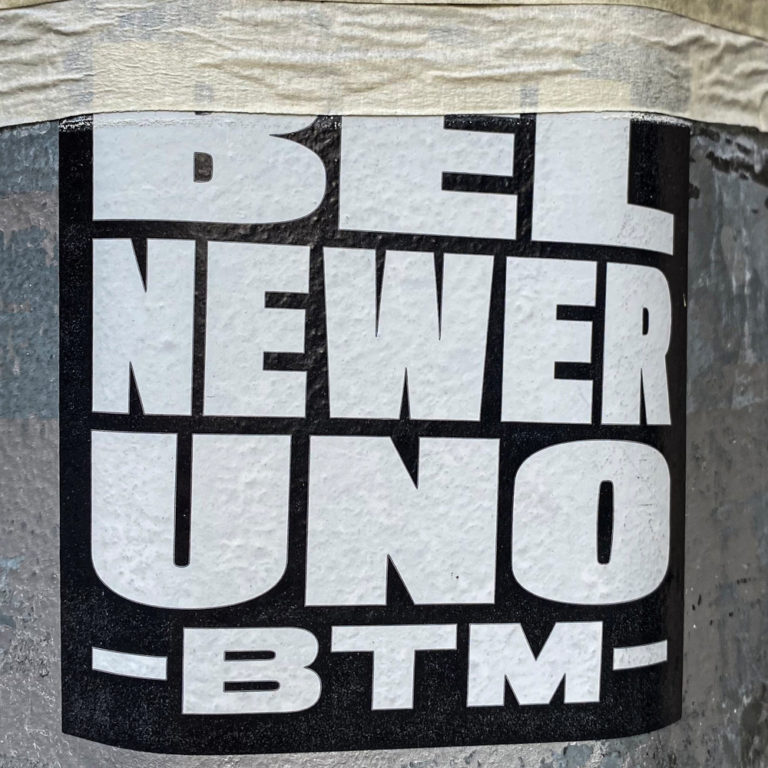 BEL NEWER UNO BTM. This sticker is unidentifiable what the message that the designer tries to communicate.